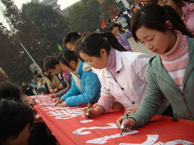 129日,数学与计算机学院在明德广场举行纪念“一二·九”历史图片展及签名活动。此次活动由数学与计算机学院09级软件工程专业主办。