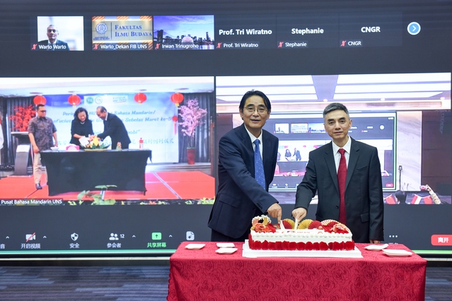 随后,在梭罗和成都会场的嘉宾们分别通过切印尼传统黄米饭和5周年生日蛋糕的形式,共同分享三一一大学孔子学院成立五周年的喜悦。现场还举行了bw必威西汉姆联官方网站、三一一大学、四川锂源新材料有限公司和印尼锂源新能源有限公司“产学研校企国际合作谅解备忘录”签约仪式暨“产学研校企合作基地”揭牌仪式。