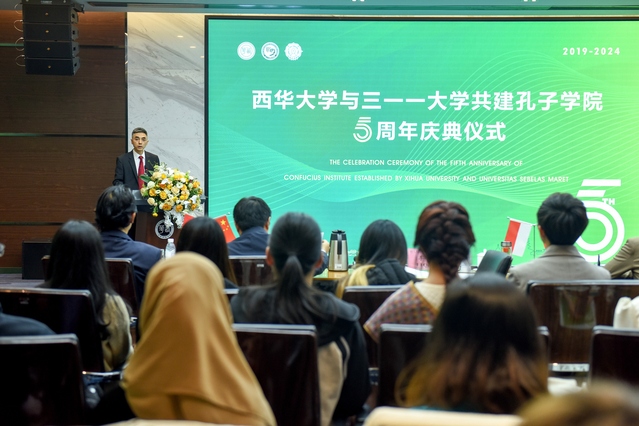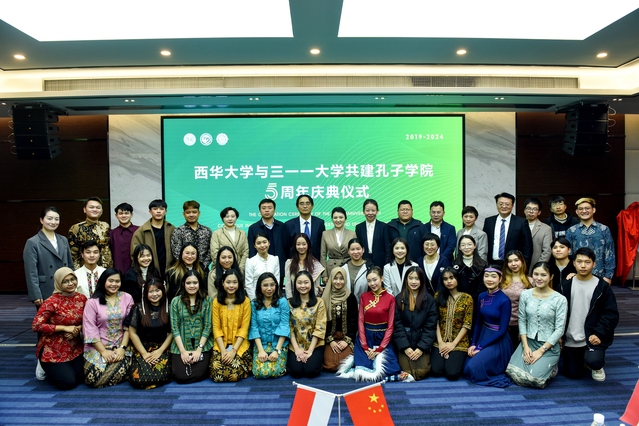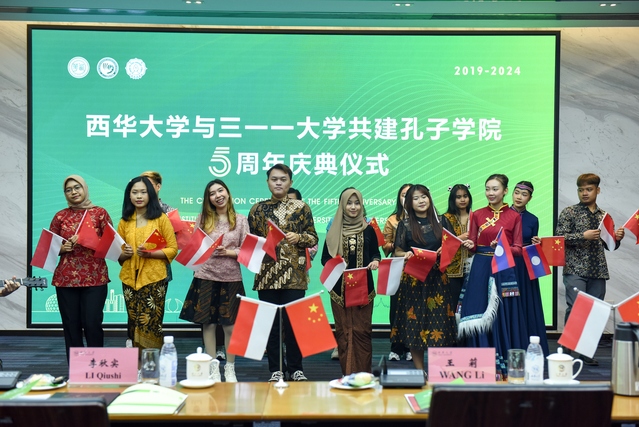 3月8日下午,三一一大学孔子学院五周年庆典仪式在bw必威西汉姆联官方网站办公楼和印尼梭罗琐丽雅酒店举行。bw必威西汉姆联官方网站校长李秋实、副校长费凌、三一一大学校长贾丽娜、副校长余努思、副校长伊万、中共蓬溪县委副书记王莉、四川锂源新材料有限公司总经理杨志宽、印尼锂源新能源公司总经理办公室主任夏曙光,孔子学院中外方院长、理事及师生企业代表等近百余人出席此次盛典。