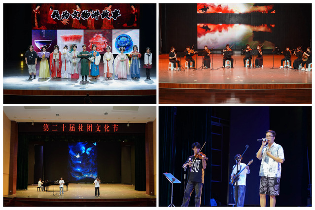 本届学生社团文化节晚会在经典名曲《梁祝》中拉开序幕,展现非物质文化遗产与现代流行音乐元素融合创新的独特魅力;汉服社、木芽声剧社以讲述文物故事为主线,展示汉服蕴含的中华传统文化之美;拉丁舞社、拼客舞蹈协会、动漫协会用热情的动作、自信的笑容、柔美的脚步,向观众展示着舞蹈的动感与优雅;音乐协会、吉他社、管弦乐团、校礼仪队带来歌曲演奏和时尚走秀,在激扬欢快的音乐律动中展现青春的自信风采。