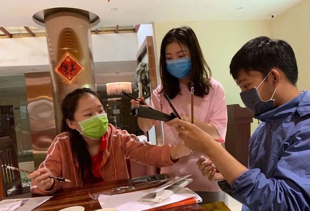 “自己挣。”懂事的陈洋体贴父母工作的辛苦,决定用自己的能力购买这些口罩。通过多方打听,陈洋得知当地的一所语言培训机构安排了为期一周的“中国传统文化周”,急需兼职老师,课程就是教当地学生写毛笔书法、硬笔书法,做剪纸等等。本身是美术专业、又对中国传统文化有一定了解的陈洋就立刻去应聘做了兼职,发挥了自己专长,也赚到了一笔购买口罩的资金。有了这笔“采购资金”的陈洋,立刻开始在万象搜寻口罩。