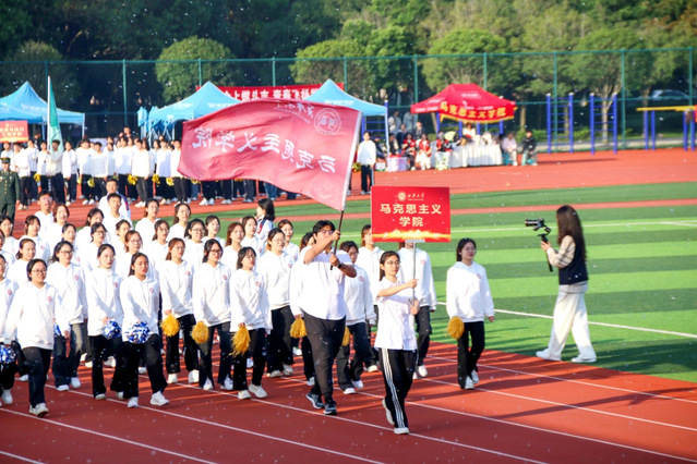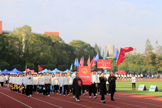 伴随着《运动员进行曲》的高昂旋律,各方队带着饱满的精神、蓬勃的朝气,迈着整齐划一的步伐走向主席台。眼神坚定,满是青春能量;口号嘹亮,尽展西华风貌。