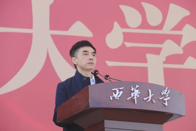 李秋实致开幕辞。他代表学校对运动会的顺利召开表示热烈的祝贺,向辛勤筹办本届运动会的全体师生员工表示衷心的感谢。他指出,学校聚焦“以体育智、以体育心”,形成了学校体育工作强大凝聚力,过去一年学校体育工作取得了丰硕成果。李秋实表示,运动会是学校一年一度的体育盛事,是对全校师生身心素质、运动水平的一次阶段性验收,更是对全体西华人团队意识、精神风貌的一次全方位检阅。“体育是一种生活方式,健康是人生第一财富”,希望同学们弘扬中华体育精神,走下网络、走出宿舍、走向操场,坚持体育锻炼、培养体育爱好,在运动中“享受乐趣、增强体质、健全人格、锤炼意志”,促进个人身心健康和全面发展。