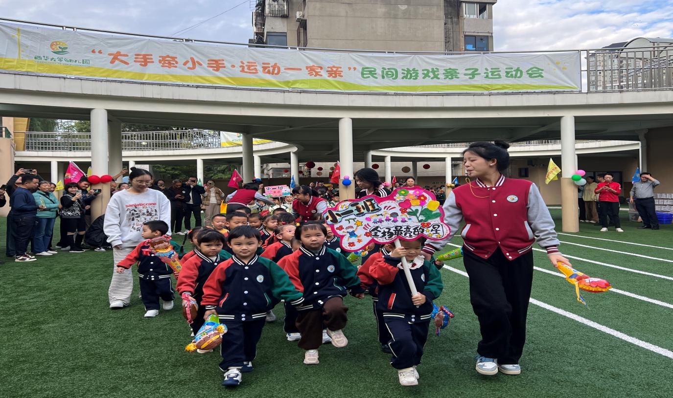 生命因运动而精彩,童年因游戏而快乐。为增强幼儿对体育运动的热爱,培养他们勇敢坚强的意志品质,促进家园携手、传承经典文化,11月1日上午,bw必威西汉姆联官方网站幼儿园举办了第二届“大手牵小手∙运动一家亲”民间游戏亲子运动会。