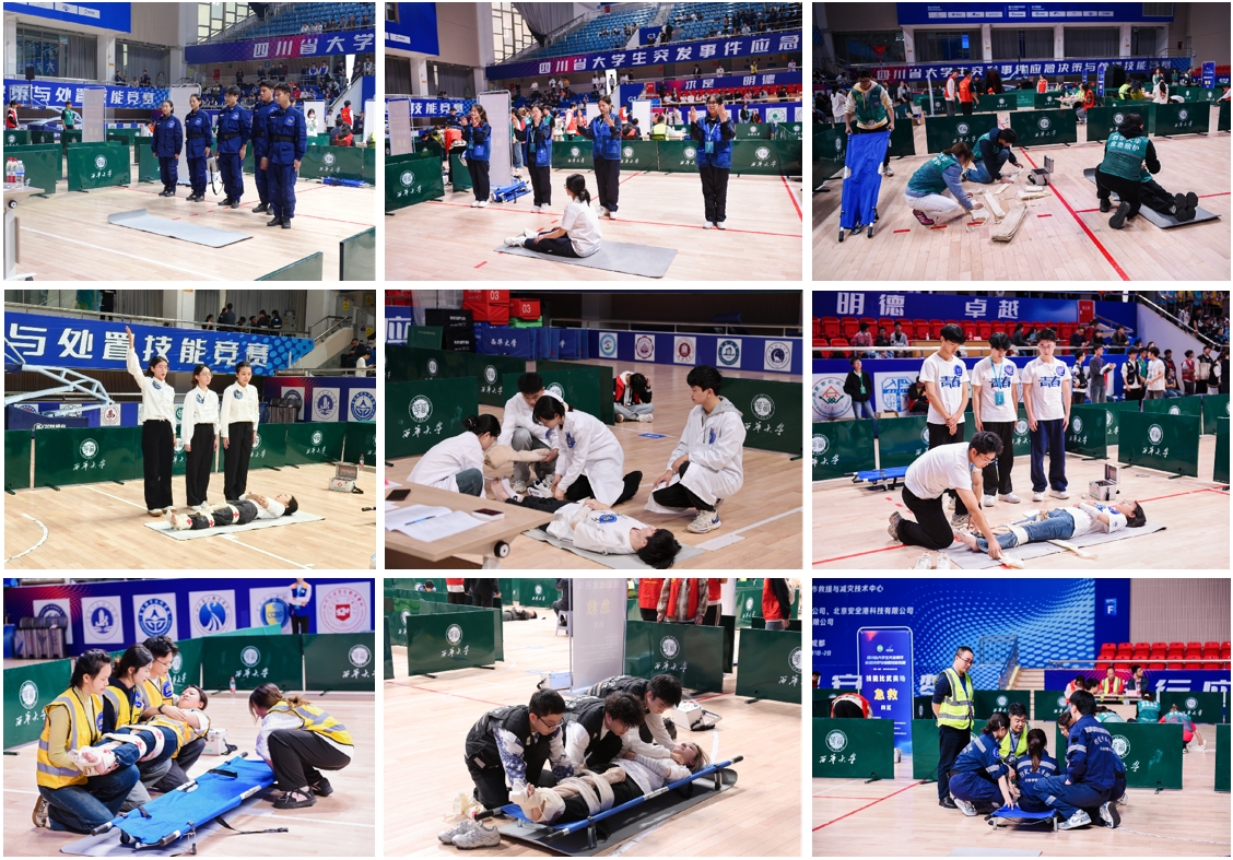 四川省大学生突发事件应急决策与处置技能竞赛旨在通过实战化、情景化的比赛形式,检验和提升应急管理相关专业学生的专业知识运用能力、创新思维和团队协作能力。竞赛共设置应急决策竞赛、救护技能比武、应急决策创新作品竞赛(第一届应急管理大学生论坛)3个赛道,竞赛特别组织了先进应急装备体验与互动科普活动。