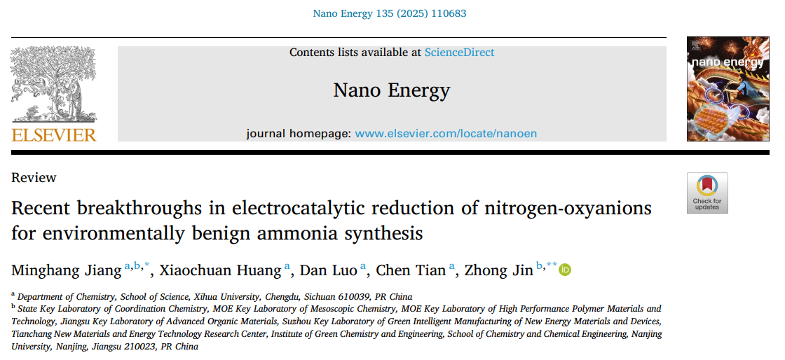 近日,理学院江明航副教授在Nano Energy期刊(中科院一区,IF=16.8)发表题为“Recent breakthroughs in electrocatalytic reduction of nitrogen-oxyanions for environmentally benign ammonia synthesis”的综述论文。江明航副教授为该论文的第一和通讯作者,bw必威西汉姆联官方网站为第一通讯单位。南京大学金钟教授为该论文的共同通讯作者。