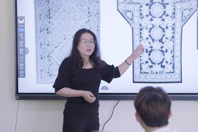 活动伊始,必威西汉姆联美术与设计学院刘俊微副教授以“贵州蜡染纹样”为题,向中印尼学子生动讲述了贵州传统纹样的文化内涵与工艺智慧。她从贵州蜡染的历史源流切入,解析了贵州不同民族和地区蜡染纹样的同异及经典图案中蕴含的自然崇拜、祖先记忆与族群信仰,让在场学生感受到贵州纹样的独特魅力。