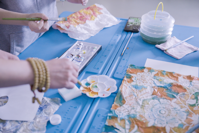 在实践环节,中印尼学生组成小组,以苗族蜡染技艺为基底,尝试将印尼巴迪克的经典纹样与中国传统元素创新融合。中国学生负责蜡刀绘图与染色指导,印尼学生则贡献色彩搭配与纹样组合的灵感。经过小组协作,一幅幅兼具苗族细腻笔触与巴迪克斑斓色彩的作品跃然布上,赢得现场师生连连赞叹。