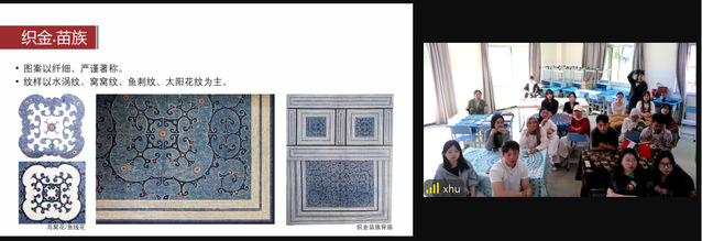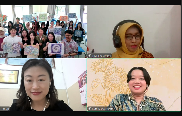 随后,印尼三一一大学艺术与设计学院Bu Divi教授以“梭罗蜡染与土生华人蜡染的文化融合”为主题,通过现场连线的形式,带领学生走进印尼国宝级艺术——巴迪克(Batik)的世界。通过影像资料与纹样图例,师生们深入了解梭罗王室蜡染的庄严符号、土生华人蜡染的祥瑞元素,以及两种风格在历史长河中交融共生的文化故事。Bu Divi老师特别提到:“华人移民将牡丹、凤凰等中国吉祥纹样融入巴迪克设计,赋予其‘和而不同’的美学价值,这正是印尼多元文化的缩影。”这一分享充分体现了中印尼文化自古以来的双向交流与融合,不仅塑造了印尼“多元一体”的文化特色,也成为海上丝绸之路文明互鉴的典范。