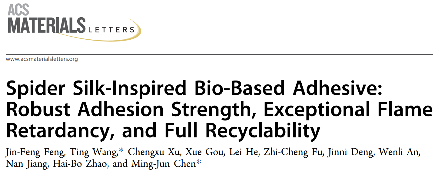近日,理学院功能高分子材料绿色制备与循环利用研究团队在生物基阻燃胶粘剂研究上取得新进展,相关成果发表在美国化学会出版期刊ACS Materials Letters,论文第一作者为理学院材料科学与工程专业硕士研究生冯金凤,通讯作者为汪婷副教授和陈明军教授,bw必威西汉姆联官方网站为第一单位。