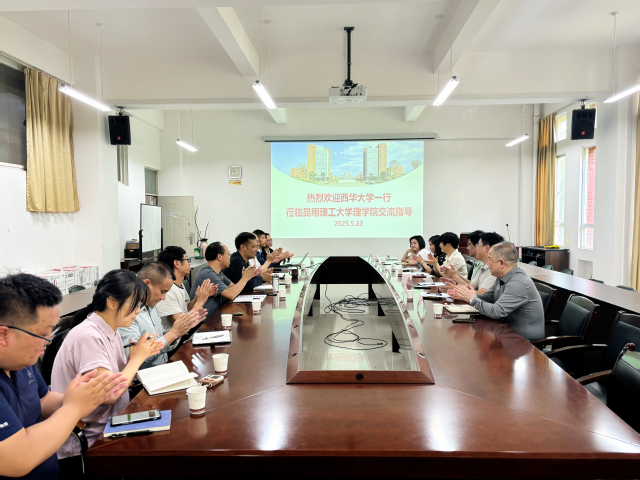 5月22日,理学院院长王周玉一行赴昆明理工大学理学院开展专项调研,围绕学科建设、师资引育、人才培养等开展院际交流。学院党委副书记周川,副院长王玉兰、李会东等参加调研。
