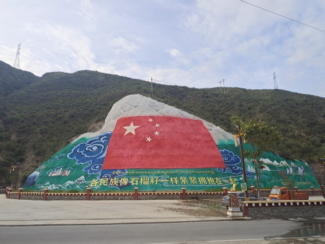 318国道被誉为“中国最美的景观大道”,一路风景绮丽多变,每年都会吸引无数自驾爱好者前往。318国道旁的旅游服务区具有绝佳的地理位置优势,这是从上海到西藏拉萨的道路上能够第一眼看到西藏的地方,也是当年十八军进藏的渡江主战场。为进一步扩大其影响力和名气,创造更高的经济效益,在学校灾后重建专家小组的指导和建议下,通过广东援建资金和学校扶贫专项资金,张广峰组织带领老百姓通过挖山开路,并在护坡上做了318国道上最大的一面红旗。投入使用后受到了自驾游客们的欢迎,很快就成为了318国道上的“网红打卡点”。