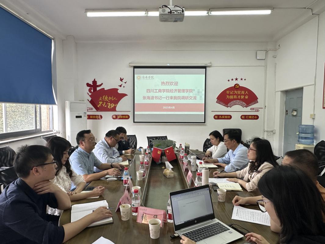 期间,四川工商学院经济管理学院来校座谈交流,主要围绕高层次人才引进政策、数字经济专硕申报、专业课程设置、实践教学体系、学生深造、就业创业、校际合作等展开深入探讨。