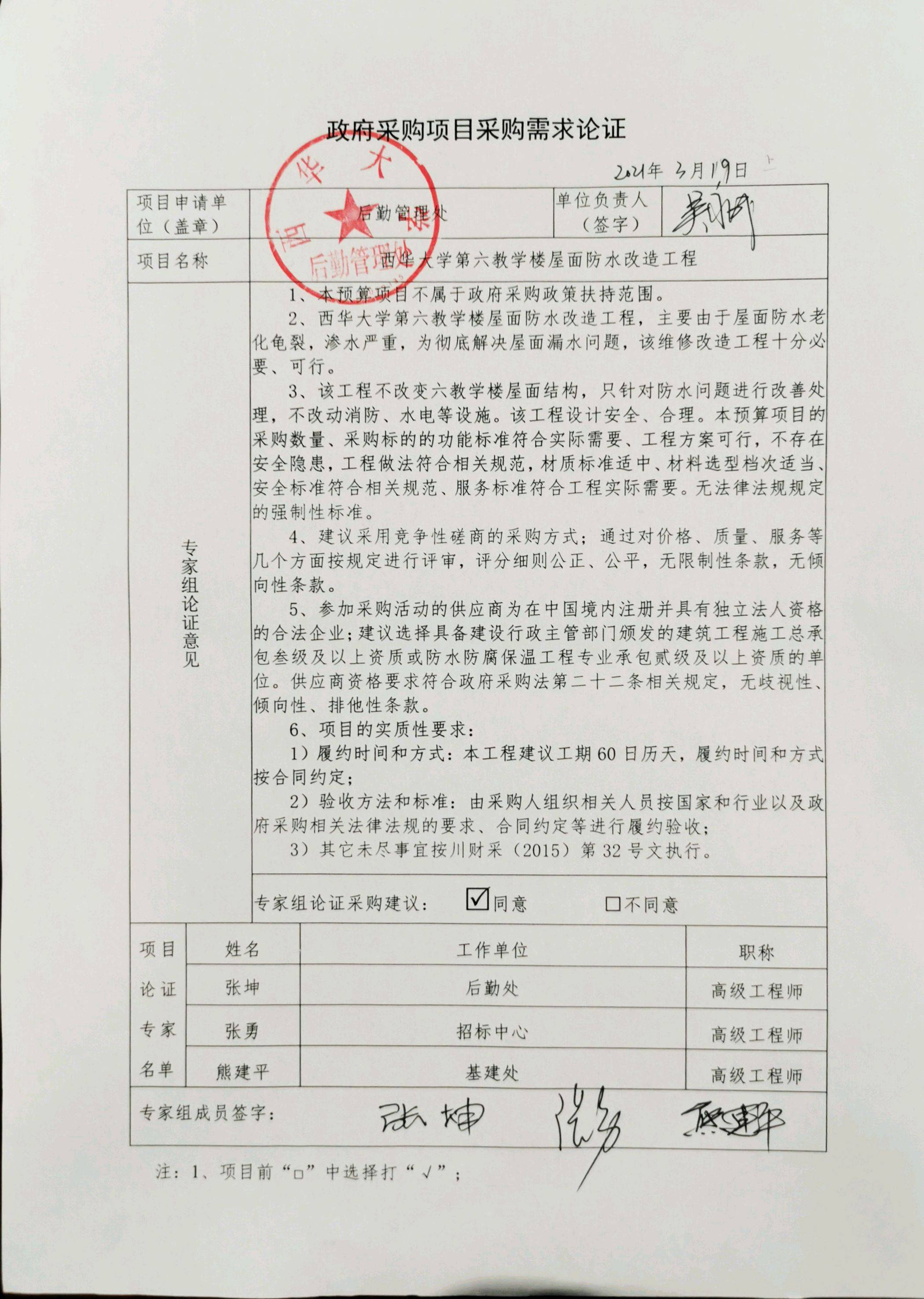 附件:bw必威西汉姆联官方网站第六教学楼屋面防水改造工程专家论证意见.jpg