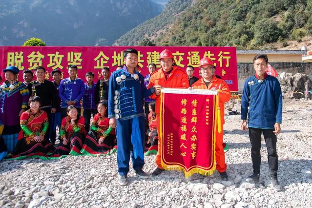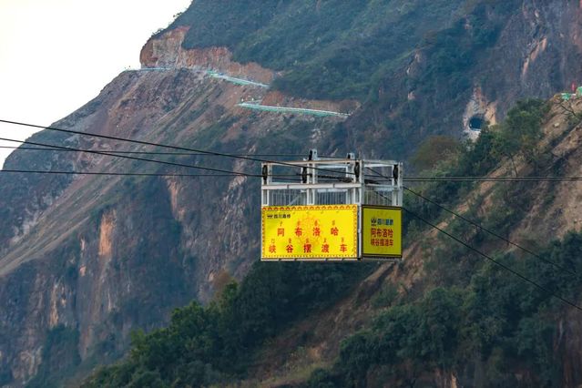 12月上旬,调运任务终于完成,赵静带领施工队“24小时倒班”全力攻坚。但意料之外的是,向前推进的“C”型隧道边修边跨。头天好不容易推进5米,第二天又塌下来,必须排险再爆破,如此反复,效率极低。现场的2台挖掘机也被落石砸毁。为了人员安全,赵静不敢贸然前进。还有半个月时间,村子还能按时打通吗?各方商议,决定采用“硬化路+摆渡车”永临结合的方案来确保村民年底通行。赵静又带领突击队在400米宽的大峡谷上与时间赛跑:没有卷扬机就用挖掘机履带转动替代,没有搅拌机就用装载机斗搅拌水泥。没有运输工具就靠人背马驮。短短16天,阿布洛哈峡谷摆渡车如期架设完成,村民出行通道安全贯通!