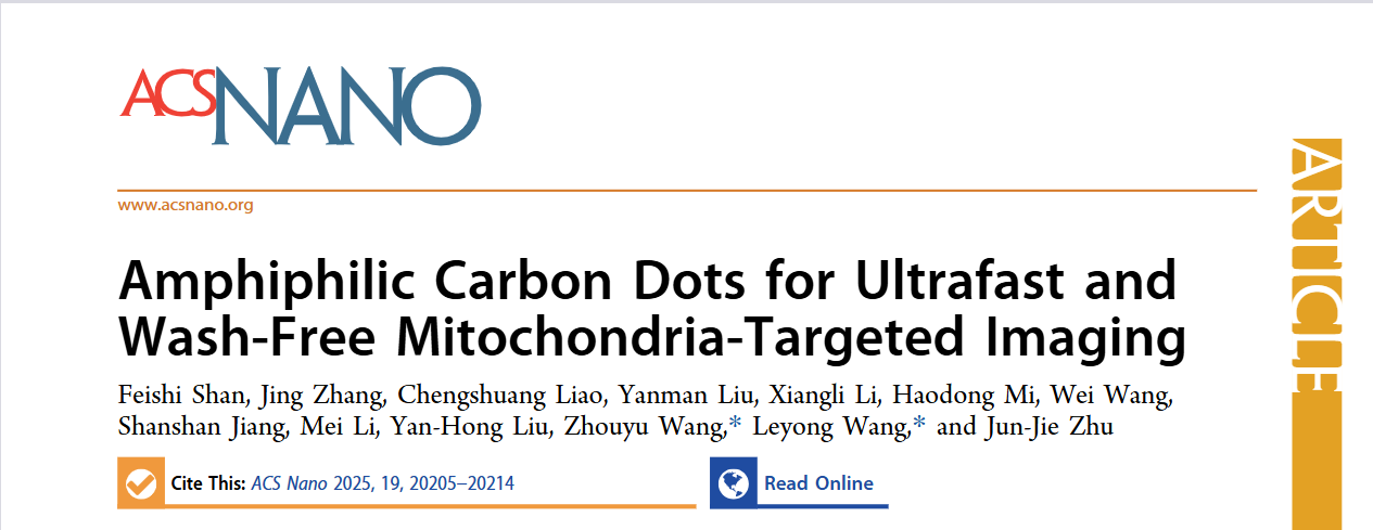 第三项工作发表在ACS Nano。本工作制备了具有独特两亲性结构的绿色发光CDs(GCDs)。GCDs在疏水相互作用的驱动下形成类胶束结构,产生与低极性溶剂中的蓝色发射相反的长波长发射。它们还同时激活多种内吞模式的协同作用,实现超快(<5 s)和免洗成像。GCDs还可以有效地靶向正常细胞和癌细胞中的线粒体。这项工作推测了两亲性CDs的组装机制,同时为具有免洗、超快跟踪的线粒体靶向纳米结构建立了潜在的设计原则。