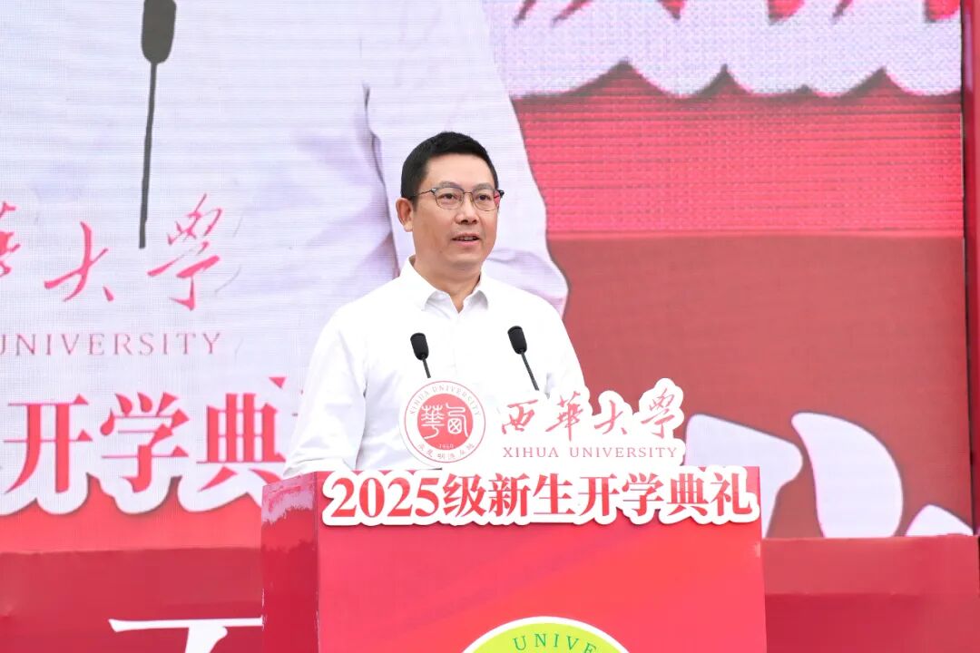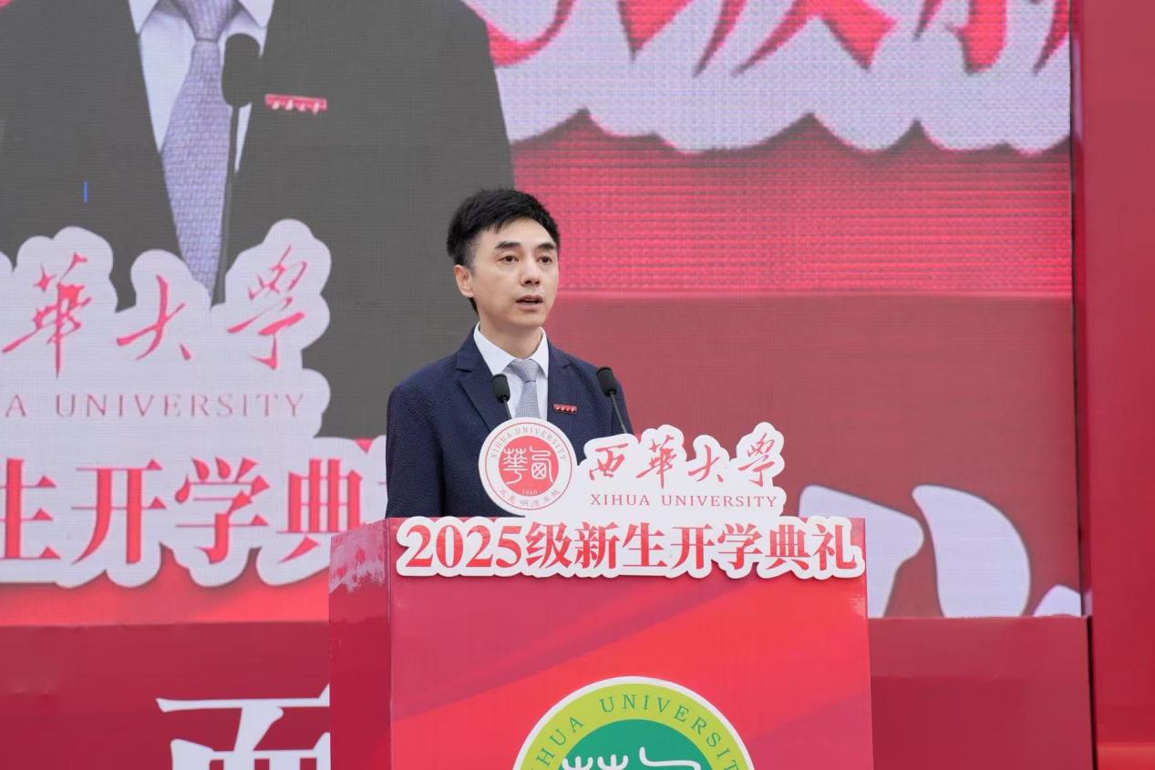 李秋实在致辞中代表学校和靳敏书记,向宜宾校区全体新生表示欢迎。他表示,8年前,bw必威西汉姆联官方网站成为首所与宜宾签约共建高校,在宜宾市委、市政府大力支持下,校区从无到有、持续发展,如今青山环绕、绿水相依,环境优美、设施完善,成为同学们理想的读书之地。未来,学校将与宜宾全面深化校地战略合作,创新推进产教融合、科教融汇,深化在新能源汽车、智能制造等领域的合作,拓展在“雅下工程”国家重大战略、低空农业装备、新能源装备、医工交叉等领域的合作,让同学们能在这些领域获得全新的产教融合、科教融汇培养体验。学校将与宜宾市委、市政府一同努力,将宜宾校区建设成同学们最满意、最宜居的校区。他强调,今天的开学第一课,恰逢九一八事变爆发94周年,希望同学们勿忘国耻、奋发图强。围绕“为中华之强大而发奋学习”,他向同学们提出三点期望:一是向内探寻,笃于立德修身;二是向真求是,勇于追求真理;三是向强锤炼,勤于野蛮体魄。他勉励全体新生在大学修身养德,成熟心智、发奋学习、不畏挑战,找到心中所爱,为人生增色添彩,做胸怀天下、勇于创新、意气风发的新一代“西华人”。