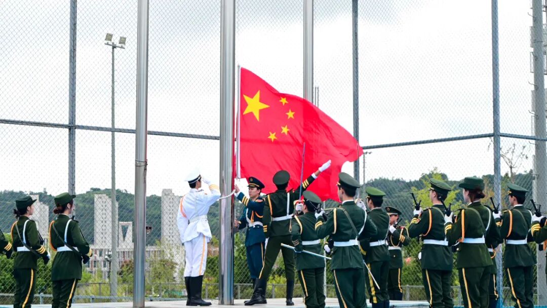 升旗仪式随着庄严神圣的国歌奏响,典礼正式拉开序幕。