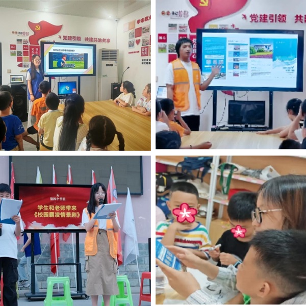 情景剧舞台上,队员们带着孩子们一起演绎“被起绰号”“被孤立”等常见霸凌场景,帮助孩子们加深对校园霸凌的认识和理解;通过场景角色扮演、“3步安全求助法”等实操,教授孩子们应对霸凌的实用技巧;通过手抄报制作,让孩子写下“我想对霸凌说不”的心声,释放心理压力。课堂上,队员们将资助政策宣讲变成“唠家常”。队员小金带着国家资助政策宣传手册蹲在孩子身边,指着插图说:“你看,以后就算家里暂时困难,国家也会帮你交学费、买书本,就像当初帮我一样。”
