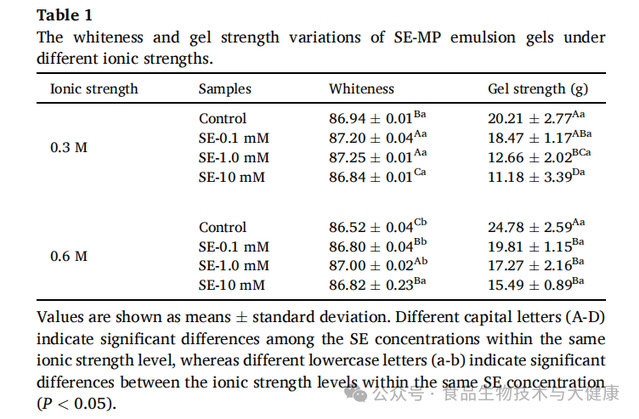 (3)在高离子强度条件下,蔗糖酯会改变肌原纤维蛋白的结构。