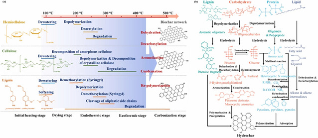 木质纤维类食品废弃物主要成分的热化学转化途径