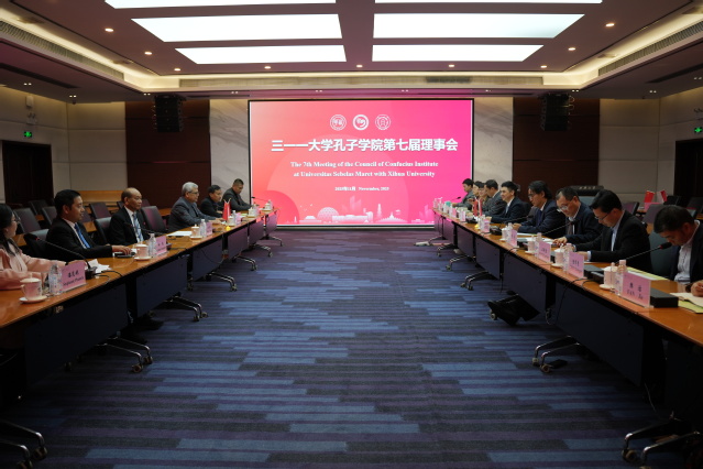 11月7日,三一一大学孔子学院第七届理事会在必威西汉姆联召开。bw必威西汉姆联官方网站校长、孔子学院中方理事长李秋实,副校长、孔子学院中方副理事长费凌,三一一大学校长、孔子学院印尼方理事长哈托诺出席会议。孔子学院中印尼方院长、两校有关职能部门和学院负责人参加会议。