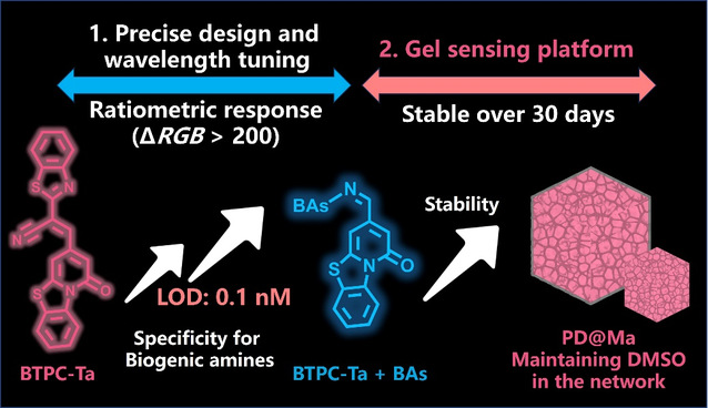 Figure 1. The design strategies and the sensing advantages of BTPC-Ta and PD@Ta.