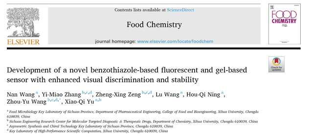 近日,食品与生物工程学院王楠老师在食品领域TOP期刊《Food Chemistry》(Q1,IF: 9.8)发表题为“Development of a Novel Benzothiazole-Based Fluorescent and Gel-Based Sensor with Enhanced Visual Discrimination and Stability”的研究论文。王楠老师为论文第一作者,理学院王周玉教授为本论文通讯作者,bw必威西汉姆联官方网站为本论文唯一完成单位。