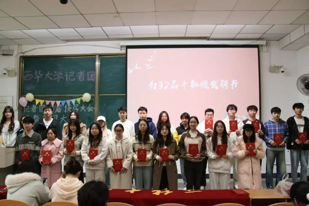 换届仪式上,主持人宣读了第32届主席团和干部名单。在全体成员的共同见证下,新一届主席团成员和干部们接过传承的重任,接续建设记者团,助力记者团不断向前发展。