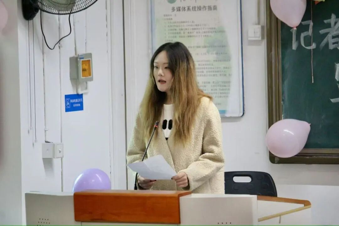 新团员代表赵延凤表达了加入记者团的欣喜之情。她认为,新生的加入为团队注入了鲜活的生命力与新的希望,表示将虚心向学长学姐学习,坚守热爱初心,与记者团共同成长。