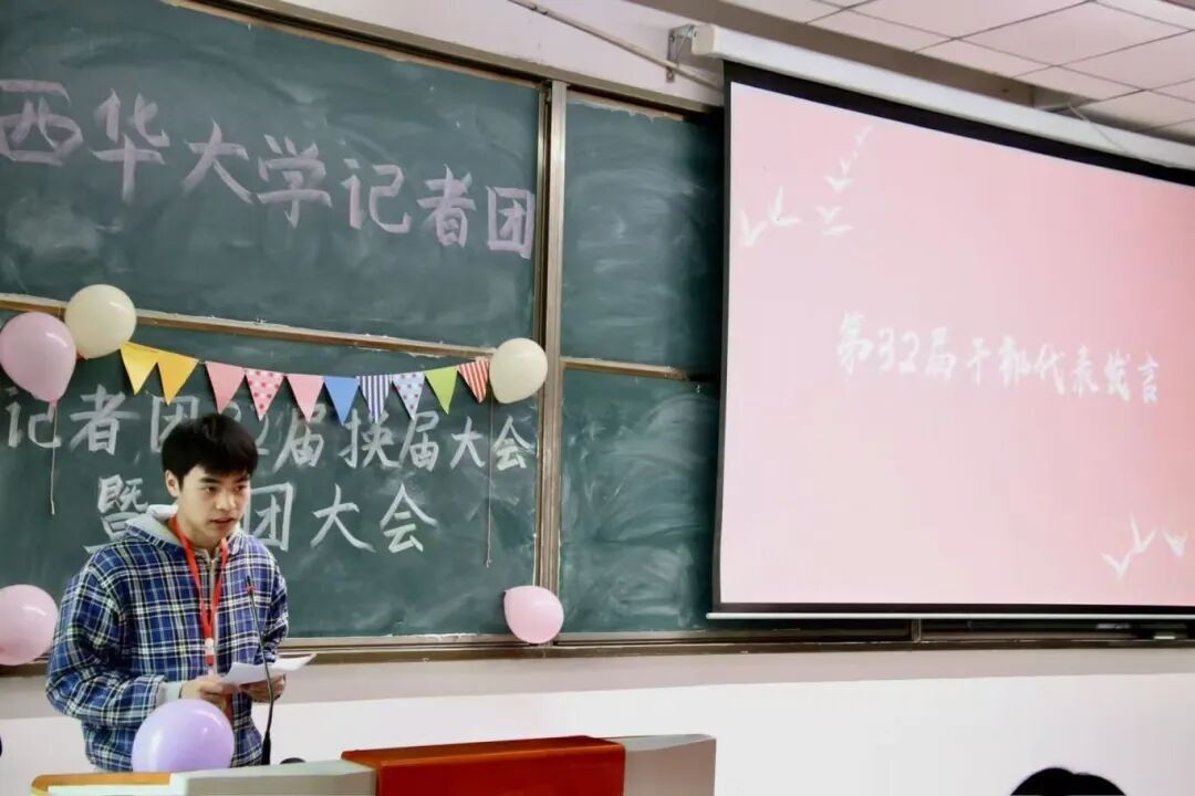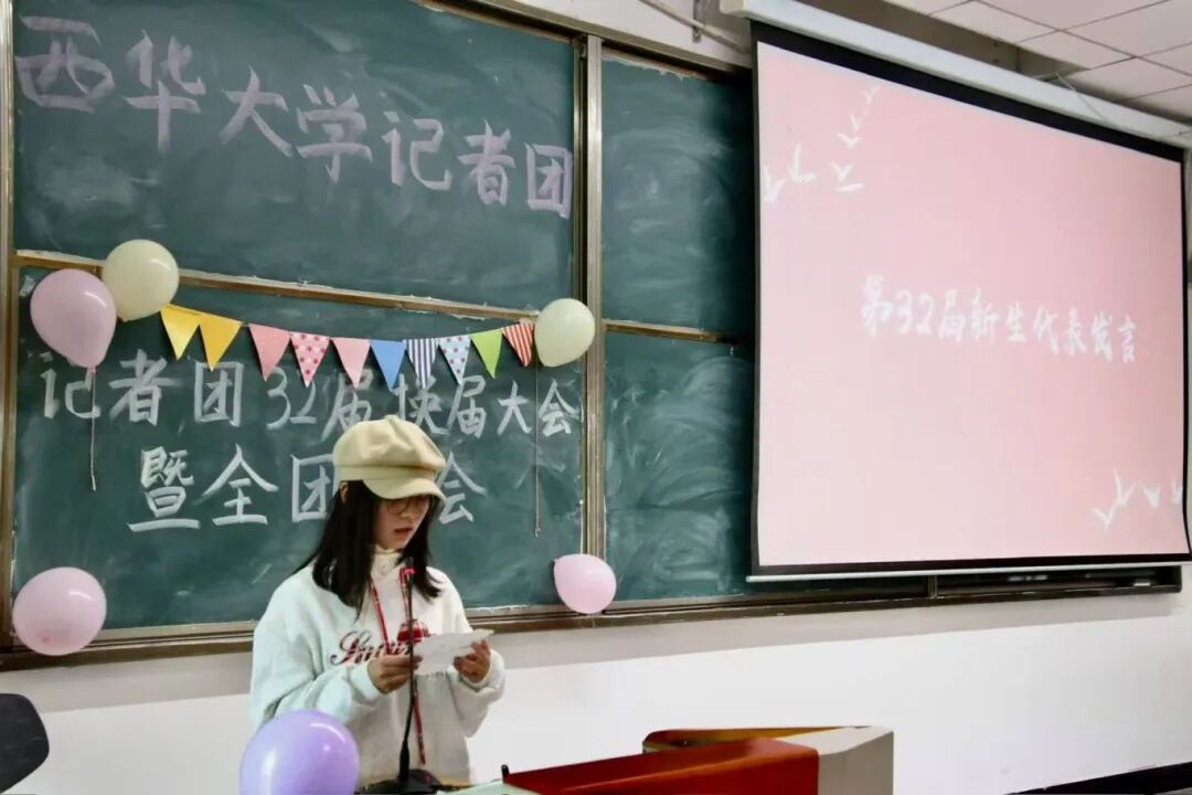 第32届团长徐怡瑶在发言中向新成员分享了三点期待:坚守新闻真实底线、永葆好奇热忱、传承团队协作精神,希望新成员能在这里锻炼能力、收获友谊,融入互帮互助、相互支撑的大家庭。