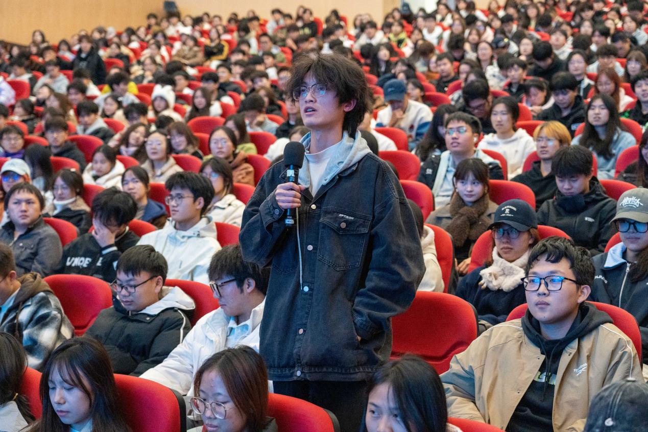 互动环节,同学们踊跃提问。在授课尾声,靳敏勉励同学们在西华这片沃土上扎根,向未来茁壮成长,在与家国共进的青春选择中,做最好的西华人,遇见最优秀的自己。