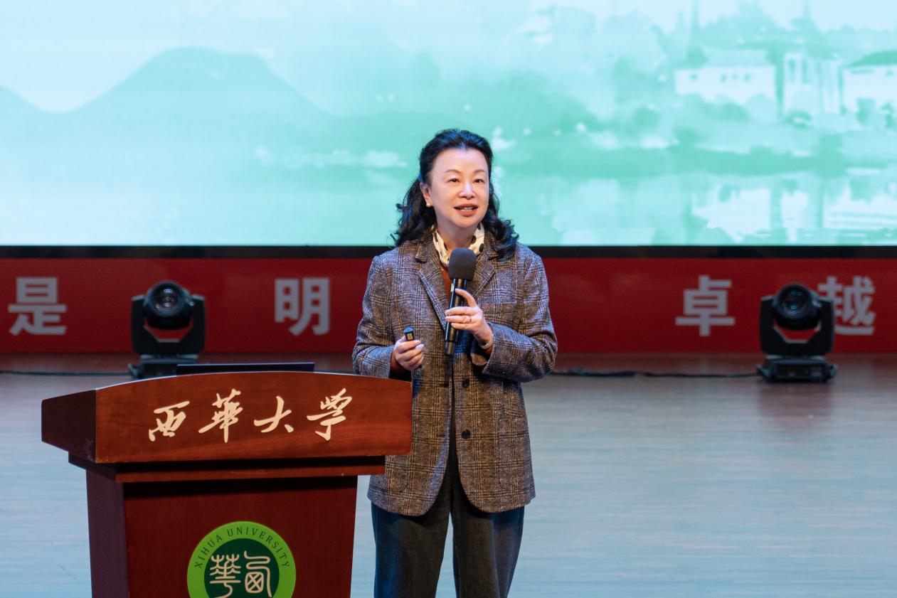 从校史脉络出发,靳敏回顾了学校65年来与国家工业化、农业现代化同向同行的发展历程,带领同学们走进“西华的过去与现在”。她谈到,学校传承“农机立校”的红色基因,主动适应强国建设、治蜀兴川战略需求,推动形成“工农融合、文理交叉”的协同发展新生态。近年来,学校在学科建设、师资队伍、人才培养、科学研究等方面取得了系列突破。宜宾校区立足国家战略,紧密对接四川省及宜宾市的经济发展需求,深化产教融合,推动协同创新,为区域发展注入了新动能。