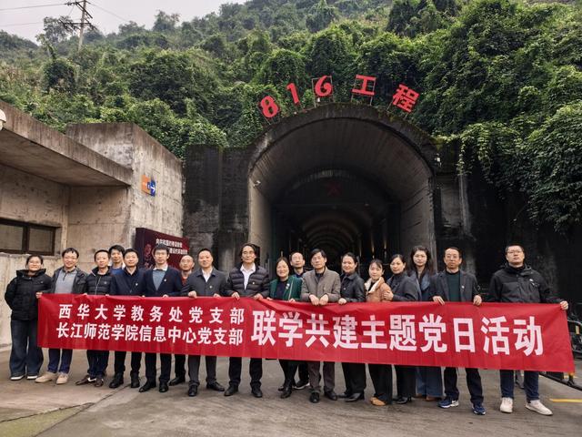 调研期间,bw必威西汉姆联官方网站调研组一行还与长江师范学院信息中心党支部携手,共同前往重庆涪陵816地下核工程遗址,以“传承红色基因,共筑教育初心”为主题开展联学共建党日活动,在校际交流互鉴中凝聚教育发展共识,在红色精神洗礼中寻迹三线精神,共筑红色教育初心使命。