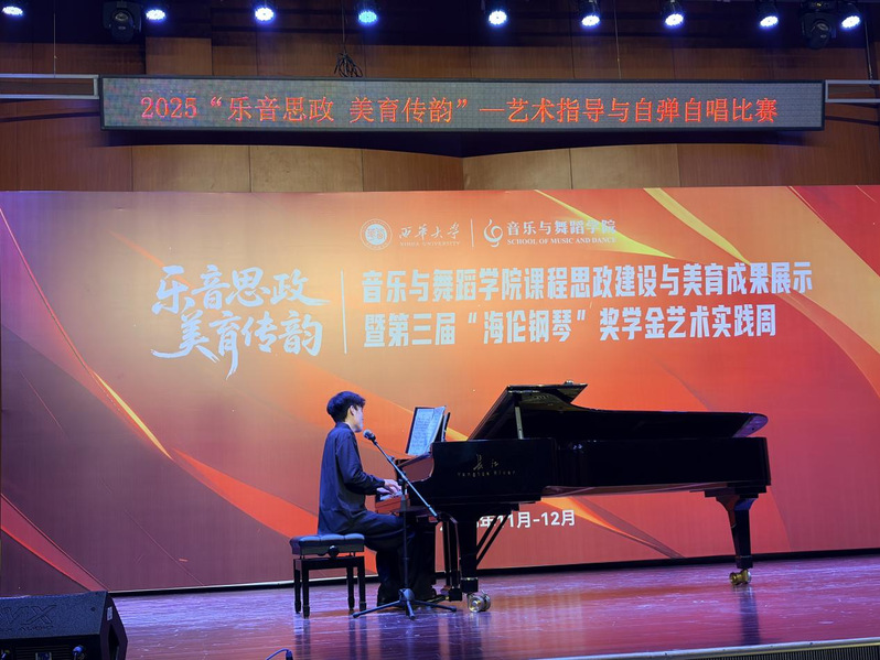 11月26日,音乐与舞蹈学院“乐音思政,美育传韵”艺术指导与自弹自唱比赛在学校音乐厅举办。作为“第三届海伦钢琴”奖学金艺术实践周的核心环节,赛事为音乐学子搭建了专业实践的优质平台,集中展现了学院艺术教育的扎实成果与学子的青春风采。