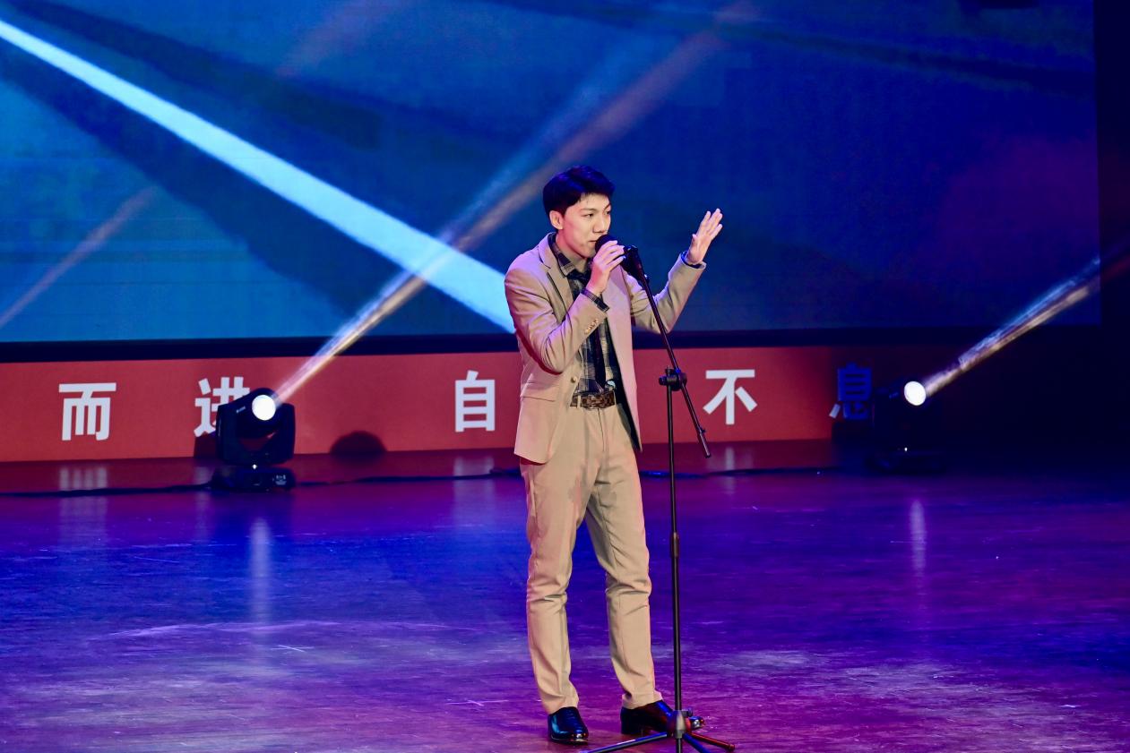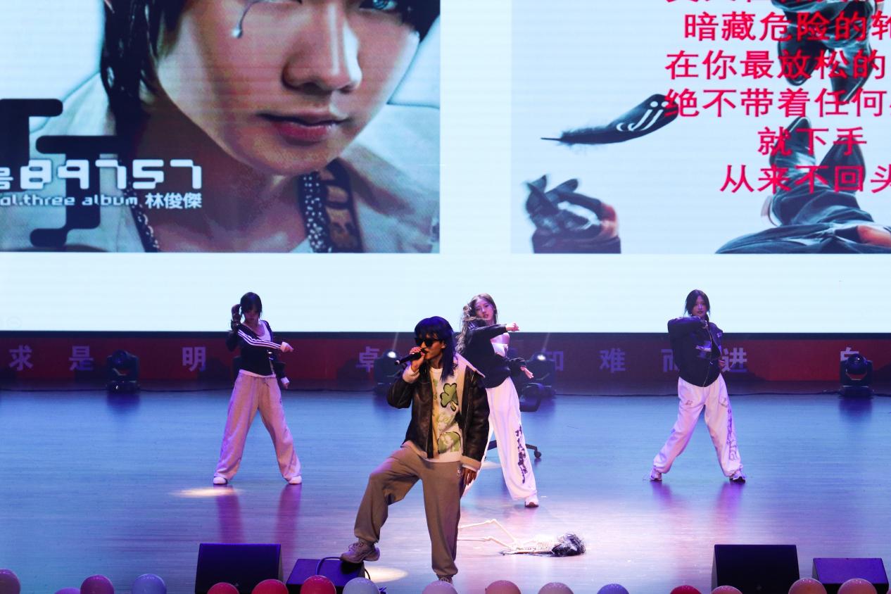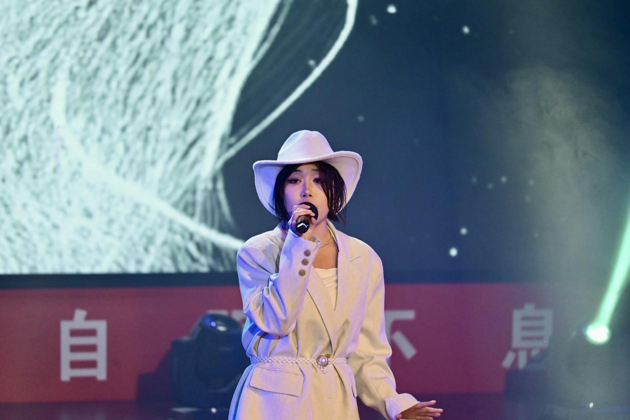 随后电气与电子信息学院付钧同学带来《杀手》+《明天》,十足的表现力和独特的舞台设计点燃全场;汽车与交通学院学子余浩然的《荒漠上行走》极具质感,唱出了旋律外荒漠行者的坚韧和乐观;外国语学院毕与然同学的《造物》,将歌曲里的诗意细腻传递;理学院学生李卓羲(专业组)的《乘着风》,凭借透亮的高音与稳定的气息,将青春的轻盈感拉满;材料科学与工程学院刘志强同学的《空心》,则以低沉共情的演唱,让现场陷入温柔的情绪共鸣。