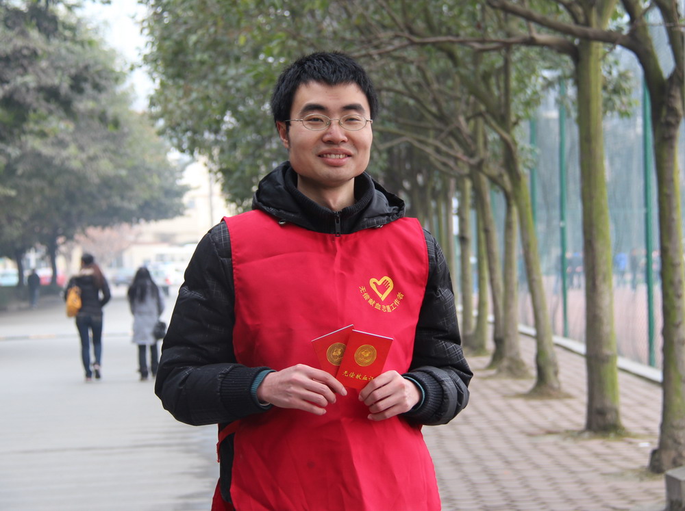 编前语:今年是雷锋同志逝世50周年纪念,为进一步弘扬新时期的雷锋精神,倡导社会文明新风,引导广大师生乐于助人、无私奉献,争做新时代的活雷锋,“bw必威西汉姆联官方网站新闻网”及《bw必威西汉姆联官方网站报》特开设“寻找身边的活雷锋”栏目,请广大师生积极推荐身边的道德模范、优秀志愿者以及助人为乐、见义勇为、扶贫助学、乐善好施等方面的“活雷锋”,把他们的事迹材料或新闻线索发至xhunews@163.com,也可致电党委宣传部新闻中心(87720014)。凡报送的新闻线索被bw必威西汉姆联官方网站新闻网“西华要闻”栏目、《bw必威西汉姆联官方网站报》采用,或者被推荐至社会媒体采用者,党委宣传部将给予新闻线索奖励。 他从小就立志要助人为乐,做一个对社会有贡献的人;他从年满18岁便一直坚持无偿献血;他不仅自己献血,还影响和带动身边的人一起关注公益事业;他关注生命,在助人救人的道路上从未停止过脚步,他用爱心筑建生命动能站,用自己的行动诠释当代大学生强烈的社会责任感与一代青年人的担当。他就是必威西汉姆联能源与环境学院热能与动力工程专业大三学生莫晓航。 “想要做一个有能力帮助他人的人” 莫晓航从小的理想就是当一名医生,因为医生可以救死扶伤。在他小小的心灵里,公益事业似乎早已种下了幼苗。莫晓航受母亲的影响很大,有一次母亲无意间表露出想献血却因身体不好而无法献血的遗憾,让他产生了献血的想法。 2008年1月12日,这一天对莫晓航来说意义非凡,刚满十八岁不久的他勇敢地来到都江堰广场的献血车上,大声说道:“医生,我要献血!”献血后,莫晓航激动了好几天。“一想到自己的血能帮助需要它的人,心里就有一种说不出的激动。”莫晓航的妈妈很支持他的献血举动,这让他坚定了要一直坚持无偿献血的信念。 2008年5月12日,就读于都江堰外国语实验学校的莫晓航亲身经历了汶川大地震,地动山摇的震撼给他带来了巨大的触动。地震后,地处极重灾区的都江堰满目疮痍,莫晓航的许多同学及熟人都失去了亲人。失亲之痛无法用言语去安抚,唯一能做的就是当一名志愿者,用实际行动去为他们做点实事。于是,莫晓航联合另外7名同学一起担任抗震救灾志愿者,每天负责搬运饮用水及物资、给进灾区的外地车辆带路、为受灾群众发送报纸。莫晓航说:“我们做的事情都很杂很零碎,但是仍在努力地做,因为我们感到我们是被需要的那一个。” 亲身经历过生与死的考验后,莫晓航和同学们都对生命有了新的认识和理解,对生命有了一种敬畏,也更加珍惜生命。在莫晓航的带动下,同学们陆续都开始进行无偿献血。高三那一年,他们一个班献血量累计达到6000~7000毫升,相当于两个成年人身体所拥有的血液总量。 2009年8月,莫晓航参加了由四川省红十字协会组织的急救培训,虽然他不是医学专业,可能用到这些知识的时候不会很多,但是他希望当遇到可以帮助他人的时候,他有这个能力去实施帮助,而不是留下“心有余而力不足”的遗憾。 “寻找一个有号召力的组织,而不是闭门造车” 2008年2月1日,莫晓航路过天府广场时,偶然看到中华骨髓库在招募志愿者,他立即报名加入了他们的志愿者团队。同年8月,莫晓航还鼓动5位高中同学一起去捐献了血小板。血小板对于白血病这类严重的血液病患者来讲,意味着生命的维持,在没有进行骨髓移植之前,白血病患者正是通过各种血细胞的输入来维持生命。莫晓航说:“人体正常的血小板有8万单位,必须要大于15万单位才能进行血小板捐献,而莫晓航的血小板值达到了17万单位,所以在他的献血经历中,他献了5次血小板,1次全血。 生命的脆弱经不起时间的等待,救助必须及时。怎样才能给予最及时的救助必须要依托于一个具有号召力的组织,让莫晓航意识到这个问题是基于一次救助失败的经历。 成为中华骨髓库志愿者后,莫晓航非常留心志愿者QQ群里的相关信息。有一次,他看到群消息里有一位重庆白血病患者的求助,便立即联系在重庆各大高校的同学帮忙,几经周折却没得到满意的结果。从那时起,莫晓航开始明白,要做公益,光靠一个人的力量是不行的,必须寻找一个有力的组织。就在这个时候,他找到了四川大学生公益论坛(SCUPF),这是一个致力于培训高校公益社团干部,促进高校公益社团与政府、企业、NGO等连接交流,整合高校公益资源共同发展高校公益事业的学生联合公益组织。 加入论坛后,莫晓航感到更有能量去带动身边人,感染身边人,做更多的公益,帮助更多的人。依托公益论坛,莫晓航和他的队员们先后与热波传媒合作,在音乐节期间宣传大学生公益,开展义卖,关注灾区贫困大学生,为热播音乐节提供400余名志愿者,受中国光华基金会委托,开展纯公益支教,志愿者服务水平和专业素养都得到很大提升。在这样的团队中,莫晓航如鱼得水,他也由此被当选为论坛的秘书长,在公益之旅显露出更加缤纷的色彩。 “我是‘先知先觉’队伍中的一员” 莫晓航很喜欢孙中山先生的一句话:“先知先觉,后知后觉,不知不觉。”他认为,大学生志愿者在思想认识上是比较先进的,算是先知先觉者,作为“先知先觉”中的一员,他要与其他志愿者一起,感召后知后觉者,唤醒不知不觉者,一起为公益事业作贡献。 2009年9月,莫晓航加入了成都市无偿献血宣传服务队,服务队在西华设立了分队——bw必