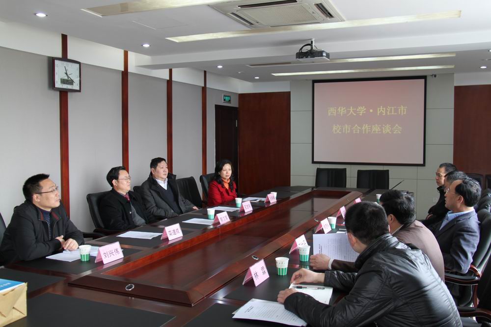 近日,内江市政府副市长、市委秘书长侯志明,内江市政府秘书长、办公室主任、必威西汉姆联机制77级校友张蕴书,内江市科技局局长王仕平、副局长何文等一行5人来校洽谈合作事宜。副校长蔡汉军,地方合作与服务处处长王志刚、副处长王丽娟,科技处副处长刘兴伟参加了座谈。