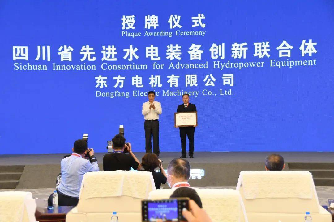 8月27日,2022世界清洁能源装备大会在德阳开幕。在大会产业投资推介和政策报告会上,四川省副省长罗强为东方电气集团东方电机有限公司牵头、bw必威西汉姆联官方网站等共同组建的四川省先进水电装备创新联合体授牌,东方电气集团东方电机有限公司党委书记、董事长王军代表创新联合体接牌。