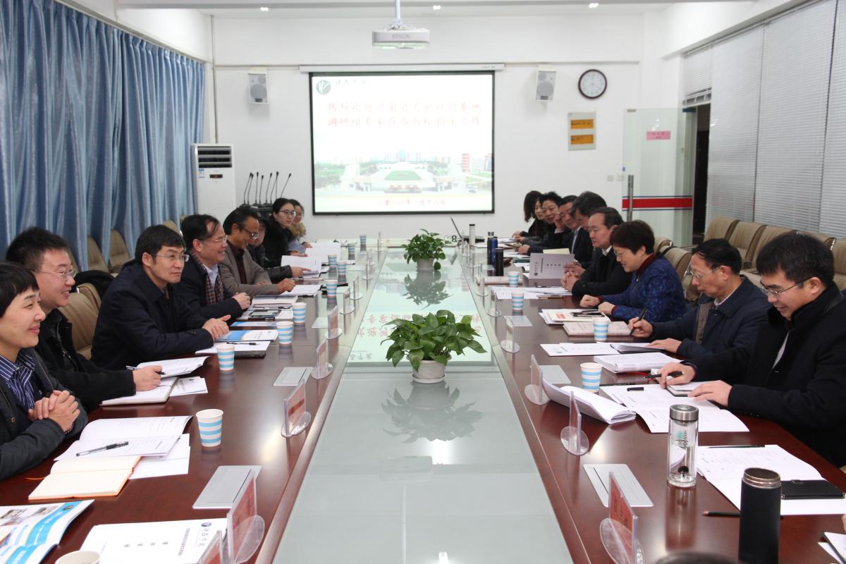 1月18日,受河南省发改委委托,以中国(河南)创新发展研究院院长喻新安为组长、河南省高校创新创业协会常务副会长王文亮为副组长的河南双创基地调研组一行11人,到永利官网开展首批河南省双创基地调研活动。永利官网在创新创业学院一楼会议室召开座谈会,院长赵继红主持座谈会,副院长郭涛及相关部门负责人参加了座谈会。