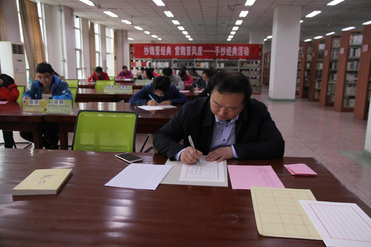 据悉,本届读书活动将持续一个多月,除手抄经典活动外,还拟开展“读书吧!同学”闯关比赛、“挑战21天阅读”活动、“悦道”真人图书馆、“悦享”读书沙龙、“悦听美文”朗读音频征集等18项活动,将为广大师生献上一场多姿多彩的文化盛宴。(摄影:王军平)