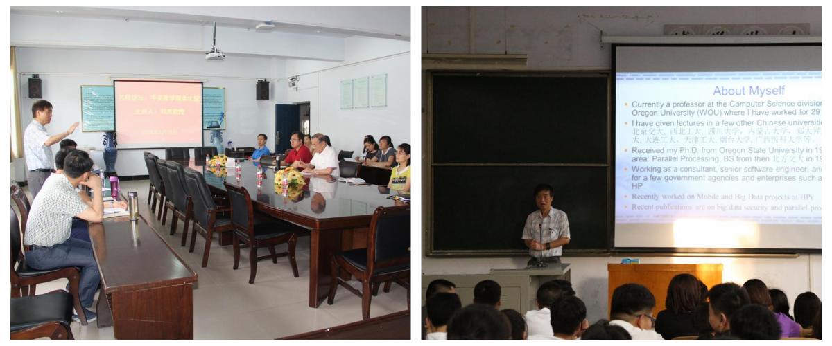 讲学期间,刘杰教授为永利官网信息工程学院网络工程专业的学生讲授了《大数据应用导论》课程。授课中,刘杰教授将理论与实践相结合,采用严谨的教学设计、基于问题的教学方法与基于过程的考核方法充分调动了学生学习的积极性,使学生在了解大数据理论知识的同时掌握了大数据相关实践能力。刘教授先进的教学理念使听课教师、学生充分领会了中美专业教学的特点,较好地培养了学生国际化视野,也给教师的课堂教学提供了可借鉴的思想和方法,有效地推进网络工程专业卓越工程师的认证工作。