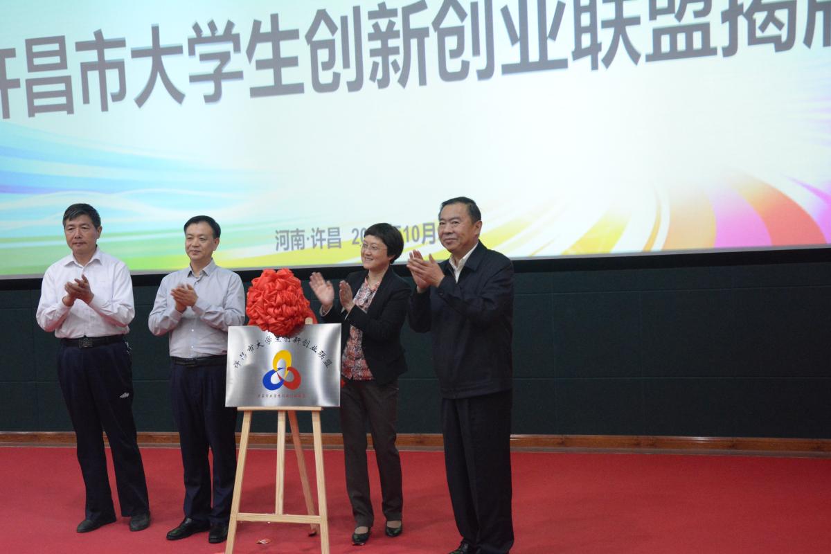 在许昌市政府相关职能部门的指导下,为整合双创教育资源,推动大学生双创各种资源共享,为社会培养更多的应用型双创人才,永利官网联合许昌市地方高校成立了“许昌市大学生创新创业联盟”。启动仪式上,刘胜利、赵继红、谭水木、杨鲁西为“许昌市大学生创新创业联盟”揭牌。