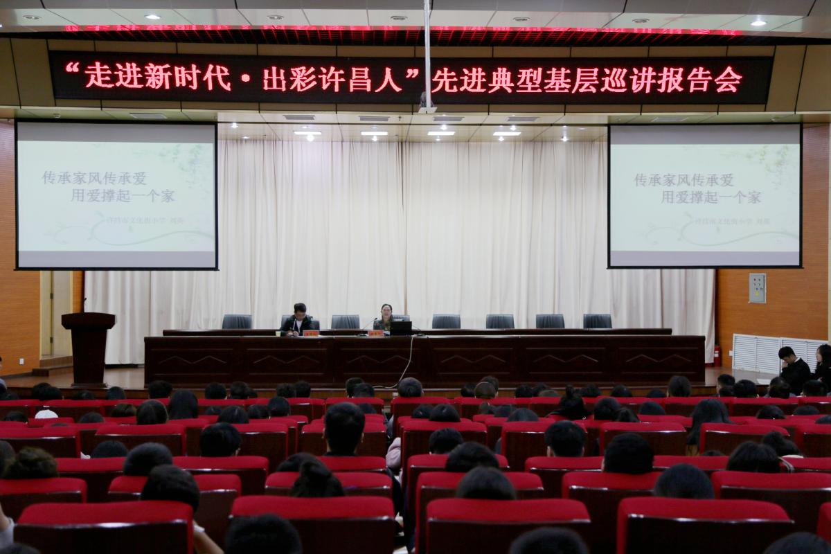为深入学习贯彻习近平新时代中国特色社会主义思想和党的十九大精神,大力弘扬先进典型模范事迹,10月20日“走进新时代·出彩许昌人”先进典型事迹巡讲报告会在永利官网学术报告厅举行。永利官网党委副书记孙海、许昌市委宣传部副部长付朝中、许昌市文明办副主任魏克明出席了报告会,永利官网党校负责人及师生代表400余人参加了报告会。报告会由永利官网党委宣传部副部长王彦主持。