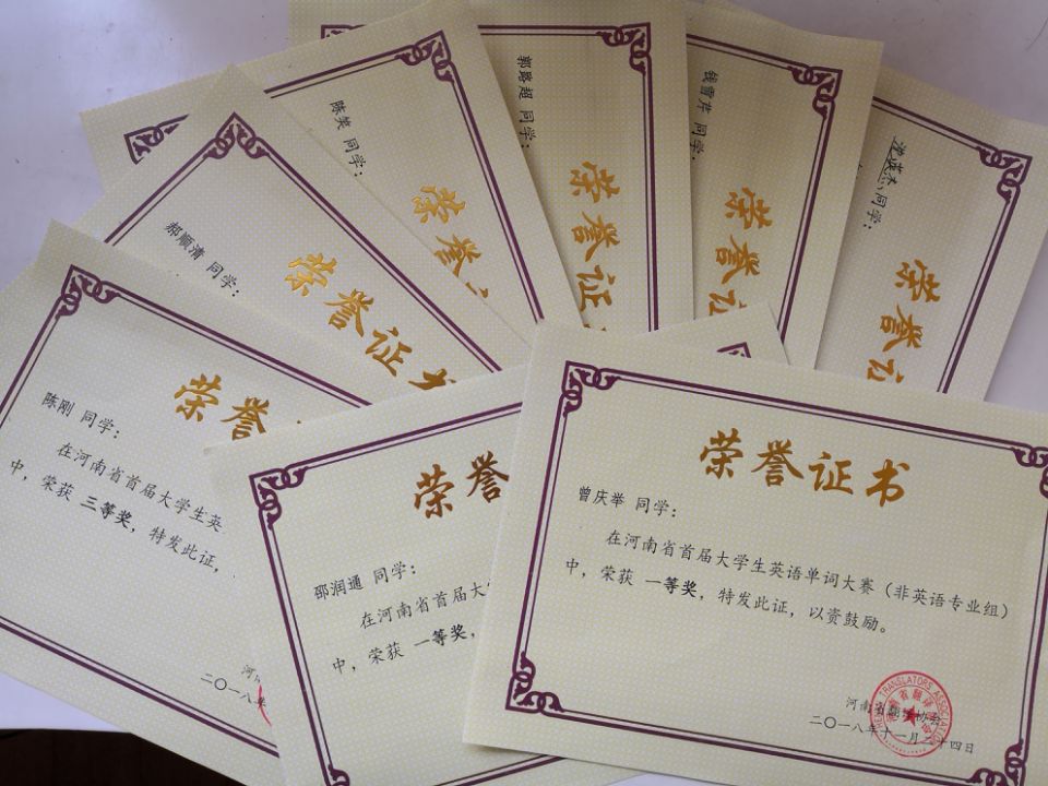 11月24日,由河南省翻译协会举办、黄河科技学院承办的河南省首届单词大赛决赛在黄河科技学院举行,本次大赛吸引了省内130多所高校的近9万名学生报名参赛,最终来自44所学校的105名优秀学子成功晋级决赛。永利官网学生曾庆举、邵润通获得英语非专业组一等奖,沈英杰、陈刚、郝顺清、陈笑获得英语非专业组三等奖,郭路超、钱雪芹获得英语专业组三等奖。