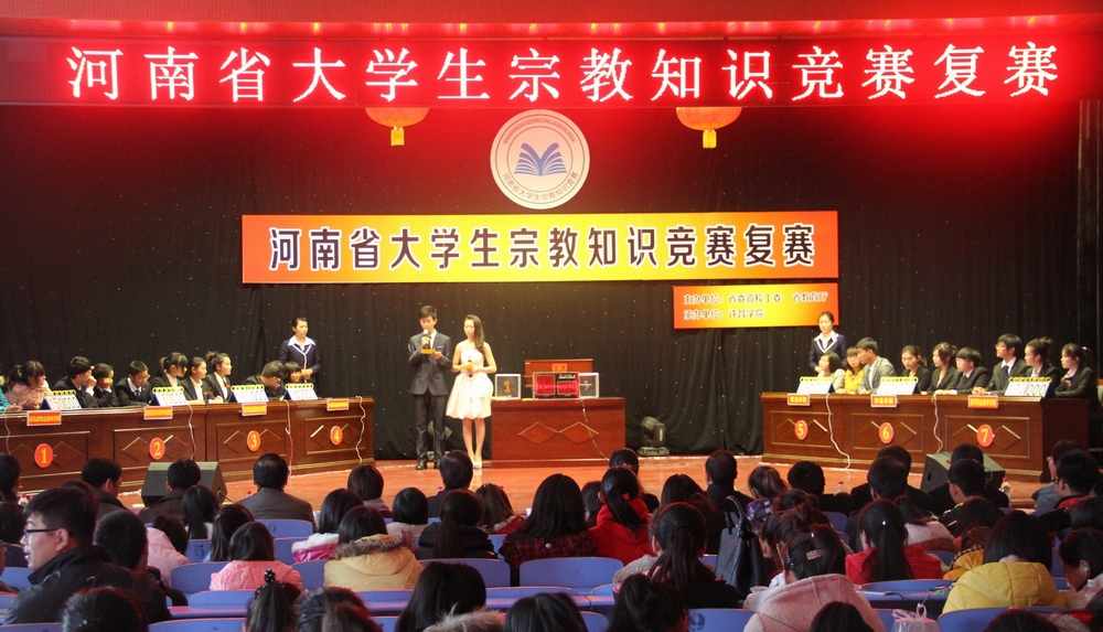 11月29日下午,河南省大学生宗教知识竞赛复赛在永利官网大学生活动中心举行。包括永利官网在内的,黄淮学院、许昌职业技术学院、驻马店职业技术学院、漯河医学高等专科学校、漯河职业技术学院、漯河食品职业学院等7所高校派出代表队参加本次复赛。永利官网党委副书记马超出席活动现场并颁奖,党委统战部、学生工作部、保卫部、校团委等相关职能部门负责人和师生代表共同观看比赛。