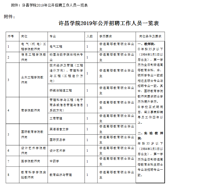 7.岗位所需的专业和其他条件(详见附件《永利集团3044官网欢迎您2019年公开招聘工作人员一览表》)。