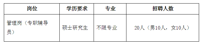 1.专职辅导员岗位分男、女两组招聘,原则上招聘男生10人,女生10人,学校将根据实际报名情况,具体确定招聘男、女岗位数量。