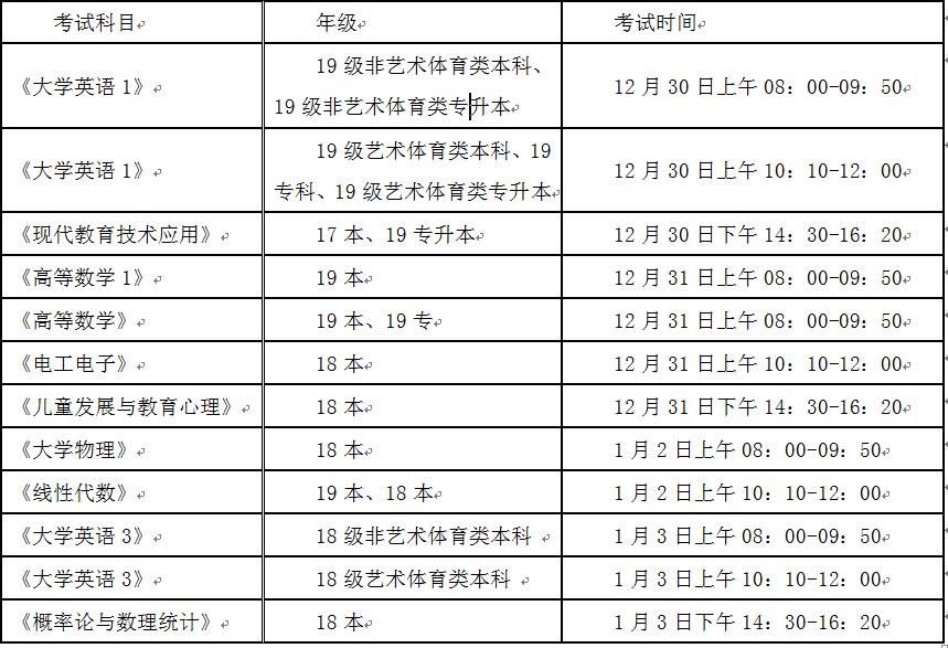 考试时间: 2019年12月30日—2020年1月6日(2020年元旦不安排考试);
