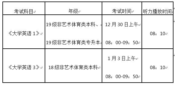 附:《大学英语1》和《英语视听说3》考试听力播放时间安排: